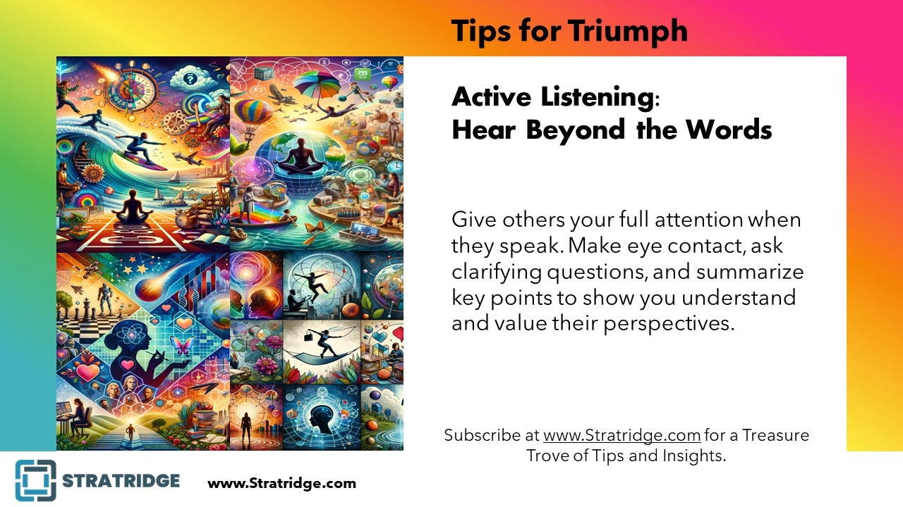 Give others your full attention when they speak. Make eye contact, ask clarifying questions, and summarize key points to show you understand and value their perspectives.