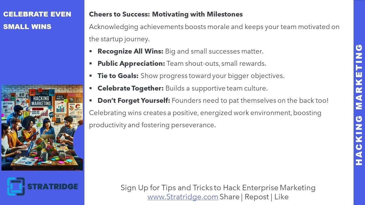Sustain Motivation: Startups often require long hours and dealing with frequent setbacks. Celebrating wins can provide the necessary motivation to keep the team going during tough times.