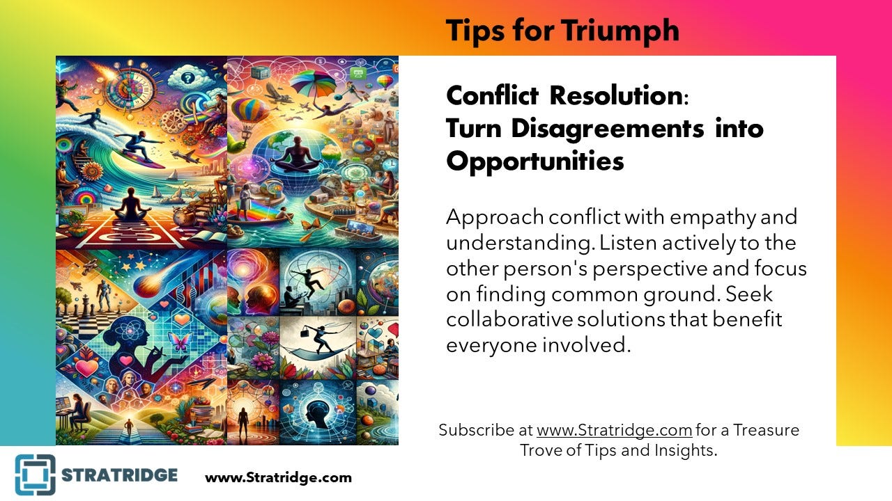 Approach conflict with empathy and understanding. Listen actively to the other person's perspective and focus on finding common ground. Seek collaborative solutions that benefit everyone involved.