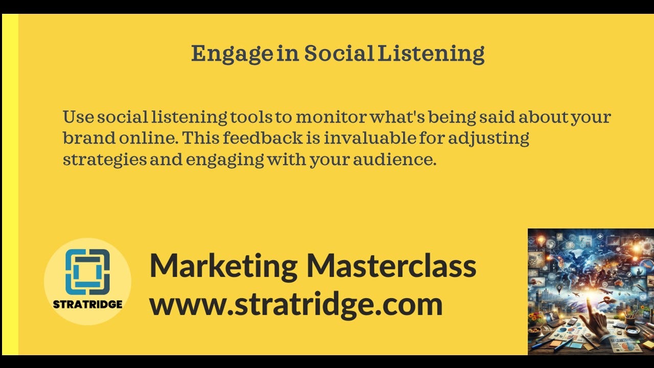 Engage in Social Listening: Use social listening tools to monitor what's being said about your brand online. This feedback is invaluable for adjusting strategies and engaging with your audience.