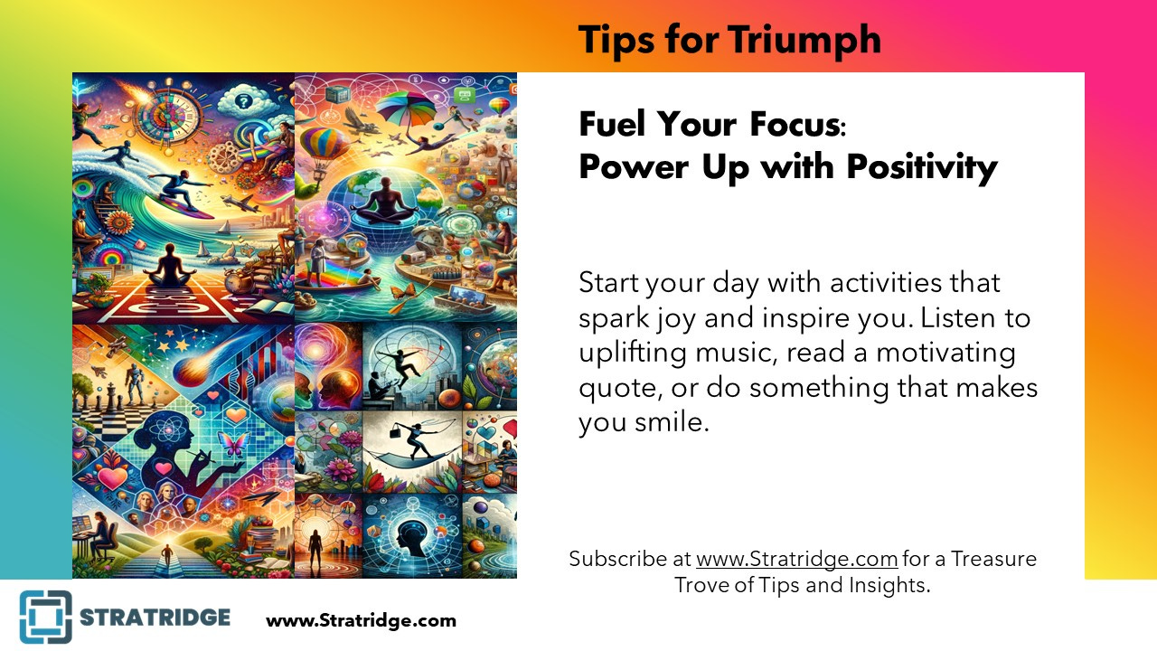 Start your day with activities that spark joy and inspire you. Listen to uplifting music, read a motivating quote, or do something that makes you smile.