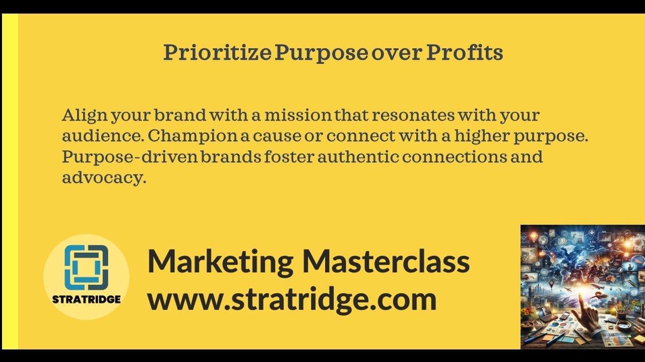 Prioritize Purpose over Profits: Align your brand with a mission that resonates with your audience. Champion a cause or connect with a higher purpose. Purpose-driven brands foster authentic connections and advocacy.