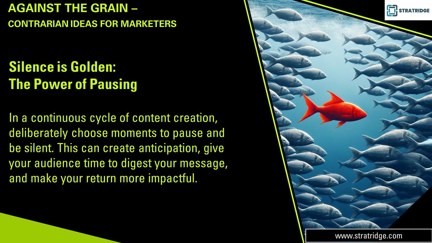 In a continuous cycle of content creation, deliberately choose moments to pause and be silent. This can create anticipation, give your audience time to digest your message, and make your return more impactful.